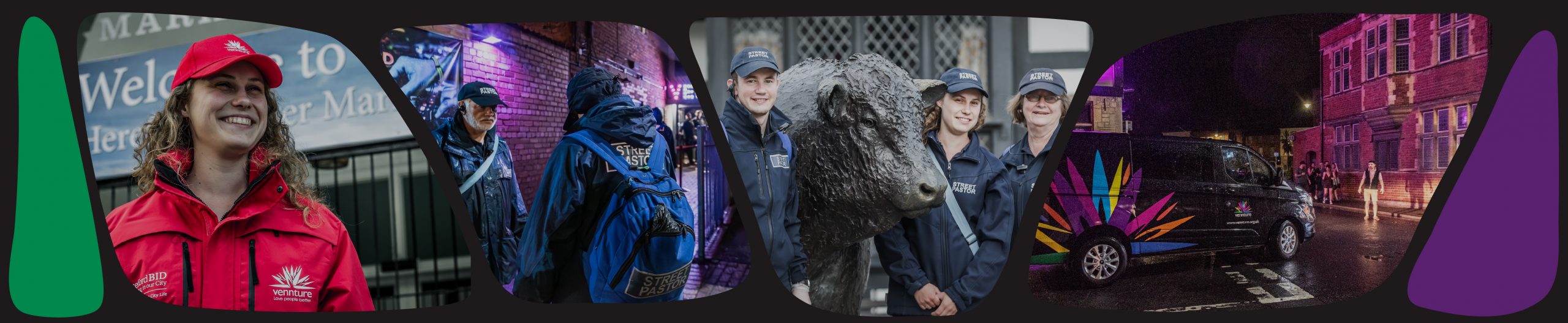 Our Street Presence teams, in uniform, walk the streets of Hereford, Leominster, and Ross, offering care, calm, and practical support during the busiest and most unpredictable hours of the night. We’re trained to notice who might need help and to respond with dignity, compassion, and respect.